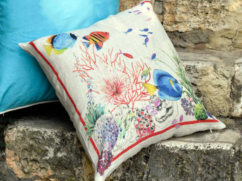 Cuscino in puro Lino con stampa marina di pesci