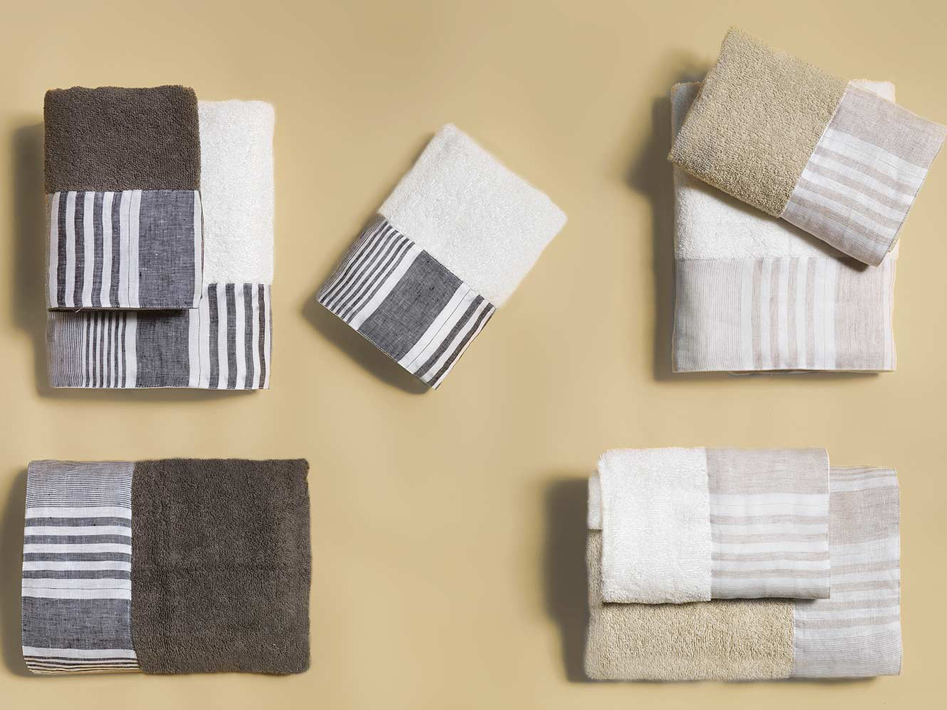 Set Spugna 4 Pezzi composto da 2 Viso + 2 Ospite in Spugna di Cotone con Balza in Lino Tinto Filo lavato in capo